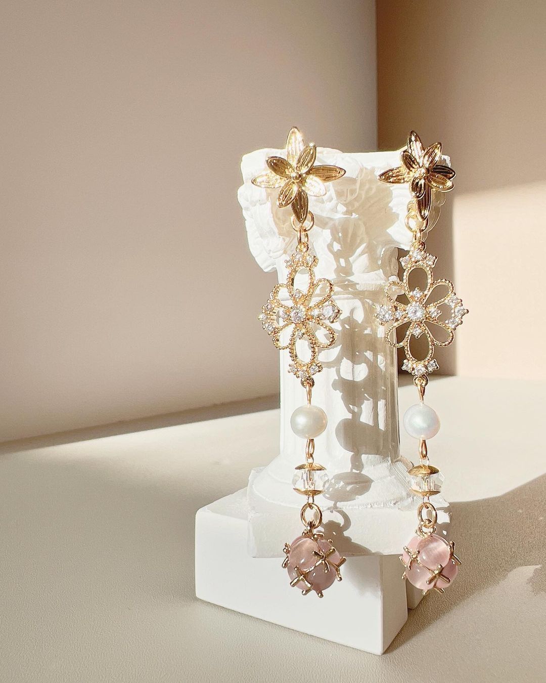 小白花既優雅 又有溫純潔的感覺🕊️ 每一塊花瓣的紋理都是清晰可見~ 小顆粒的珍珠不僅顯得非常秀氣精緻 上耳也更有夢幻浪漫的感覺 而且上耳很輕 能隨著妳的舉手投足而擺動🫧
