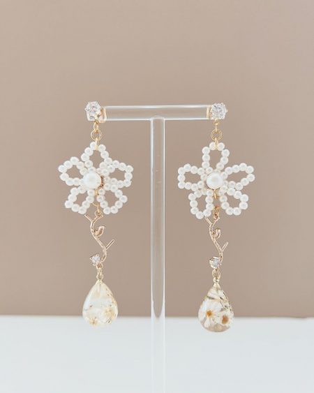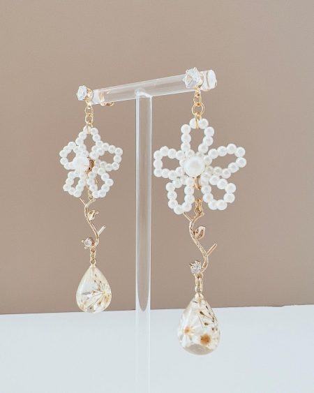 小白花既優雅 又有溫純潔的感覺🕊️ 每一塊花瓣的紋理都是清晰可見~ 小顆粒的珍珠不僅顯得非常秀氣精緻 上耳也更有夢幻浪漫的感覺 而且上耳很輕 能隨著妳的舉手投足而擺動🫧