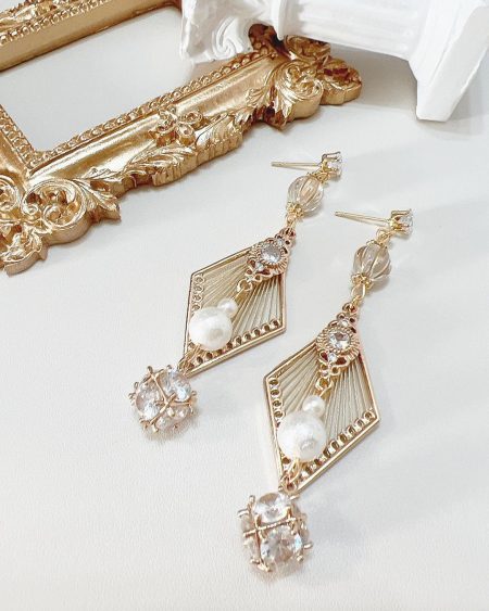 金色的復古細節,讓造型增加一份精緻感。點綴的珍珠更是靈動好看,華麗得恰到好處。