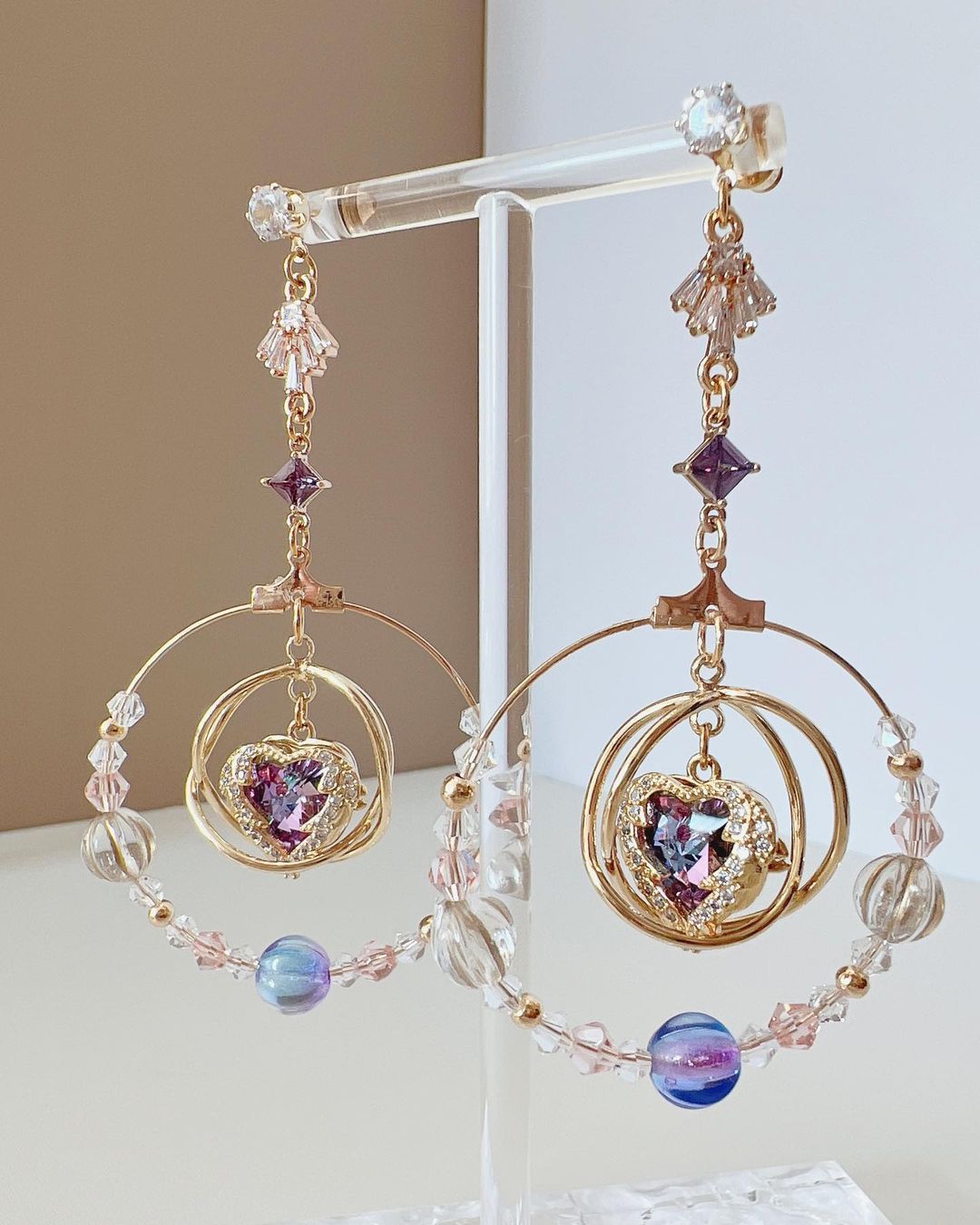 <For Party/Gathering> 十分搶眼既一款💜 中間既心心帶點紫藍色+紫紅色 圈圈設計有靈動感之餘 隨著唔同角度亦可以見到個心心既閃爍 自己做完都好鍾意💜